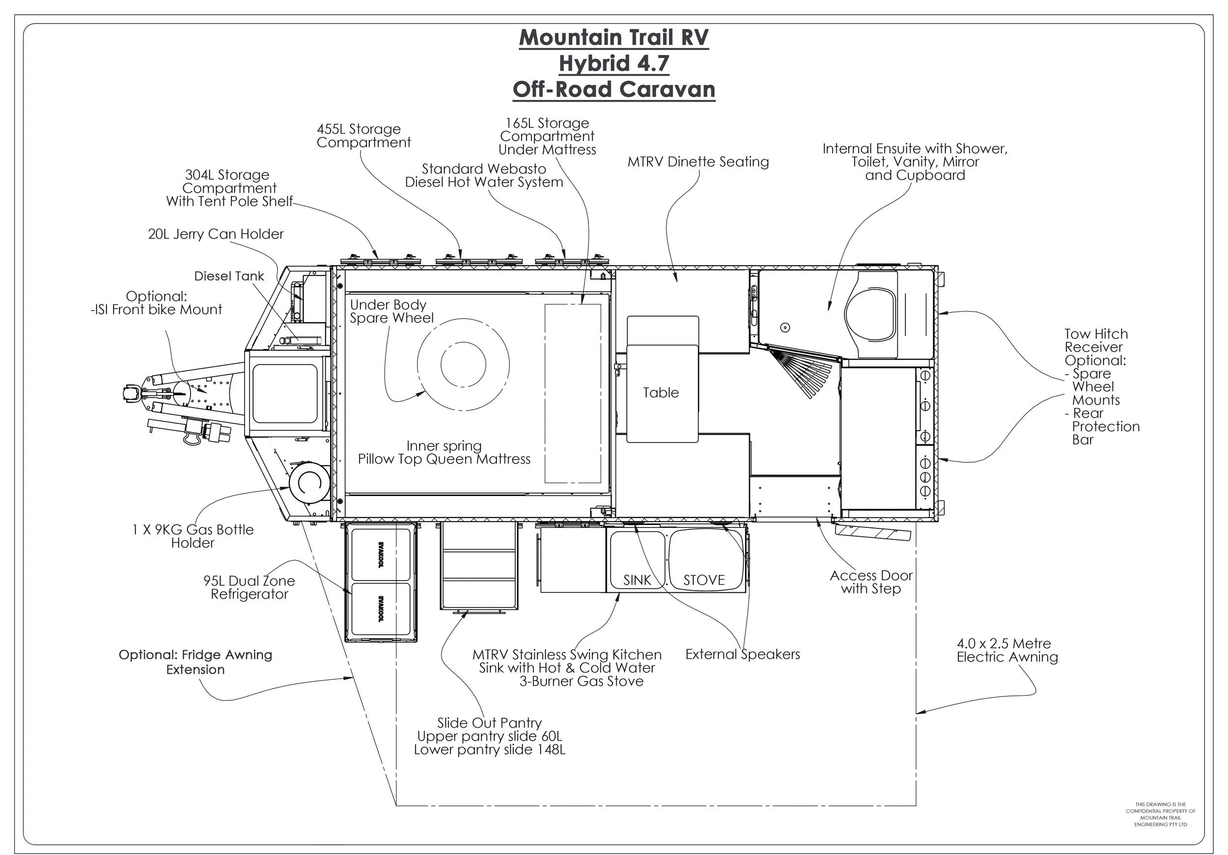 DISCLAIMER: Mountain Trail RV and its authorised dealers, retains the right to change designs, dimensions, weights, fittings, finishes, options and specifications without notice. Fittings and finishes are subject to availability and supplier discretion.
