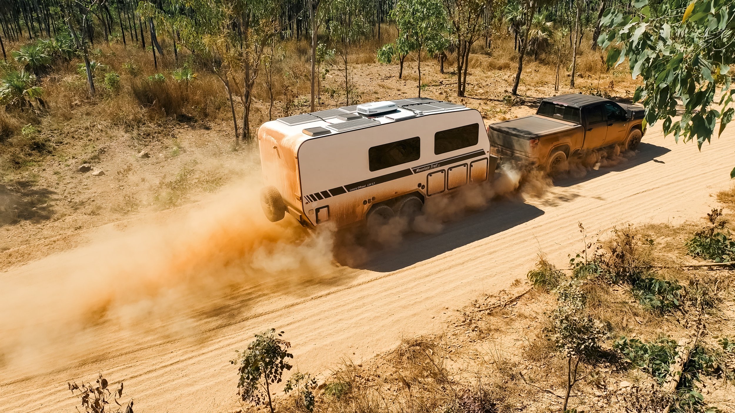 A positive pressure fan system is built into the design so when on the bitumen or off road you have the security that dust is deterred from entering your caravan.