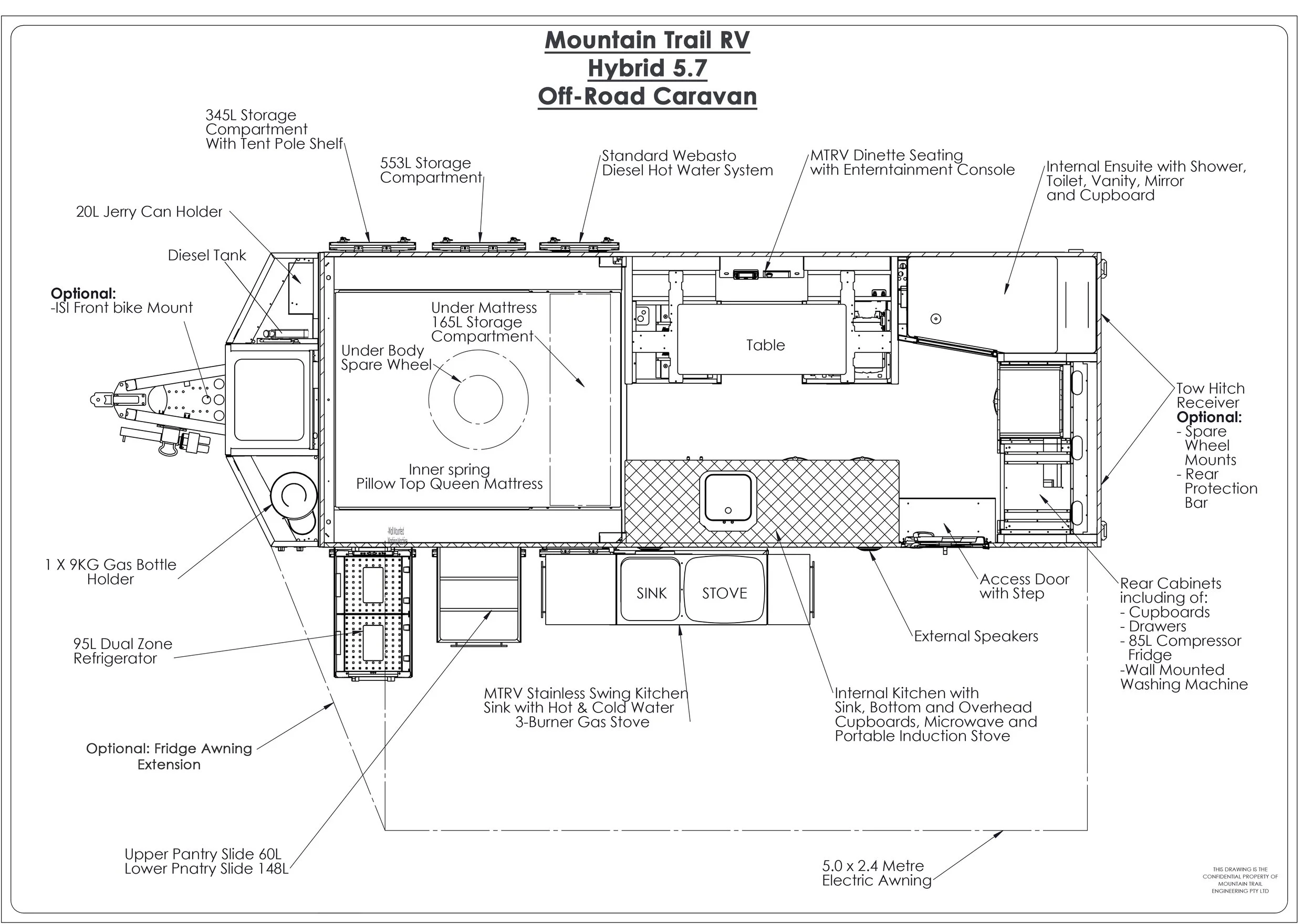 DISCLAIMER: Mountain Trail RV and its authorised dealers, retains the right to change designs, dimensions, weights, fittings, finishes, options and specifications without notice. Fittings and finishes are subject to availability and supplier discretion.